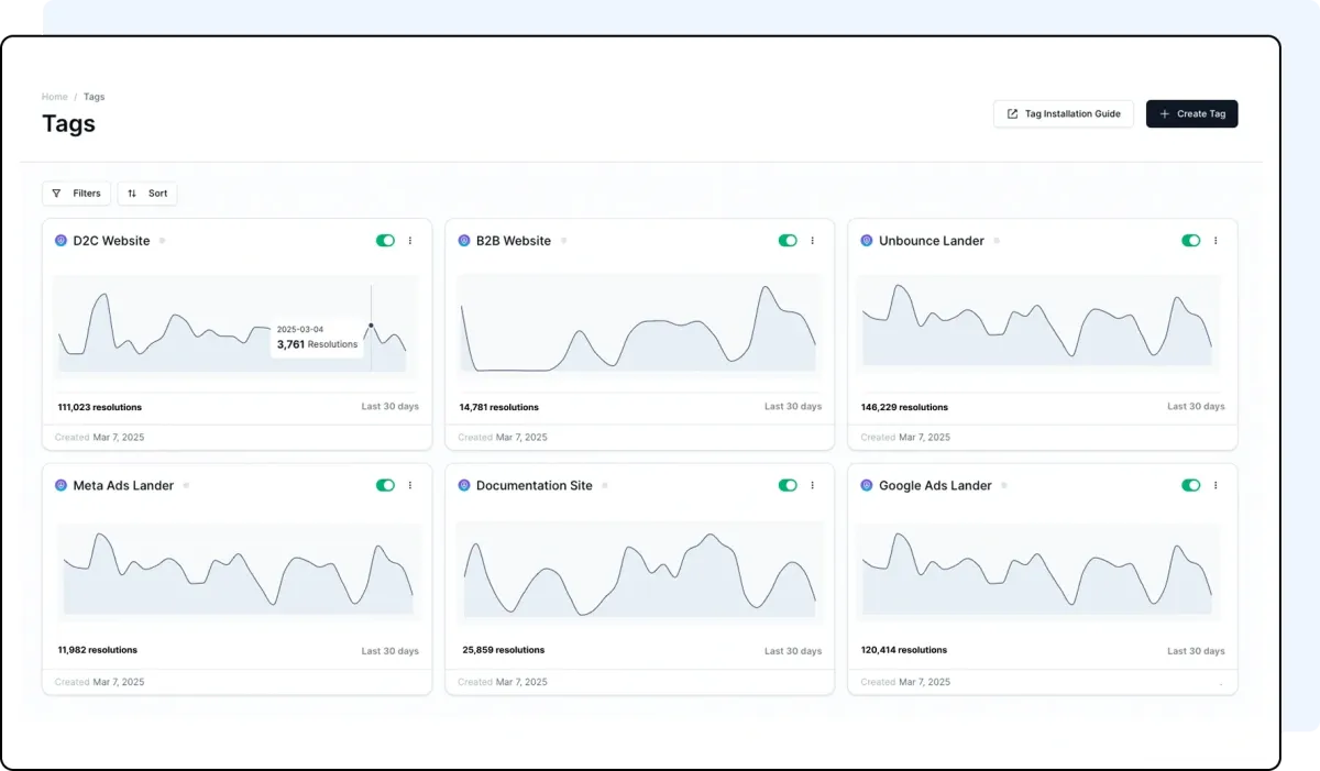 Conversion rates underperforming? CTAs broken? Funnel leaking? Our Identity Resolution tag can fix it all by revealing who is visiting your website; no form-fill needed.